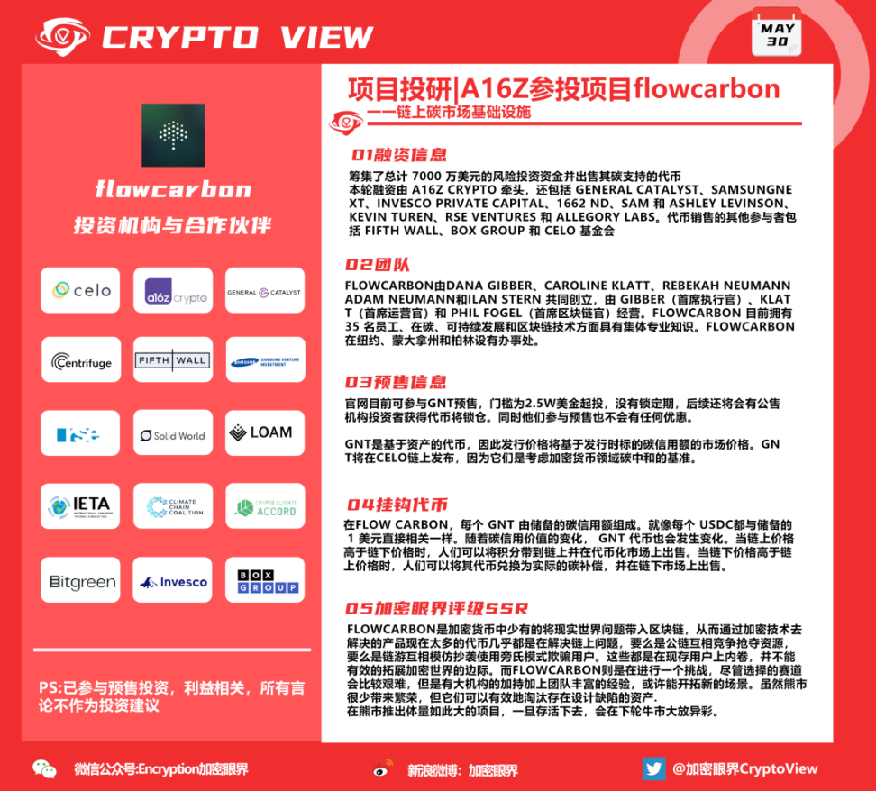 Flowcarbon是加密货币中少有的将现实世界问题带入区块链,从而通过加密技术去解决的产品。现在太多的代币几乎都是在解决链上问题。而Flowcarbon则是在进行一个挑战,尽管选择的赛道会比较艰难,但是有大机构的加持加上团队丰富的经验,或许能开拓新的场景。虽然熊市很少带来繁荣,但它们可以有效地淘汰存在设计缺陷的资产。在熊市推出体量如此大的项目,一旦存活下去,会在下轮牛市大放异彩。