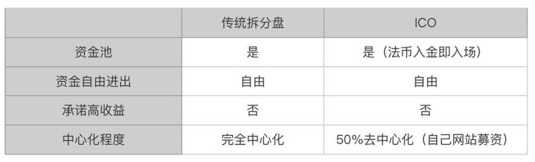 我们知道,拆分盘是将一个资产标的不断拆分成新的标的。通过新低价标的吸引增量资金。收益通过标的增值实现,这不正是 ICO 的表现吗?如果我们把当时加密货币这个赛道看做一个资金盘的话,各种 ICO 的出现正是把加密货币这个资产标的,不断通过“新的故事”来拆分成新的投资标的(新的 ICO 代币),以此来吸引增量资金。于是我们仍旧有了对比图: