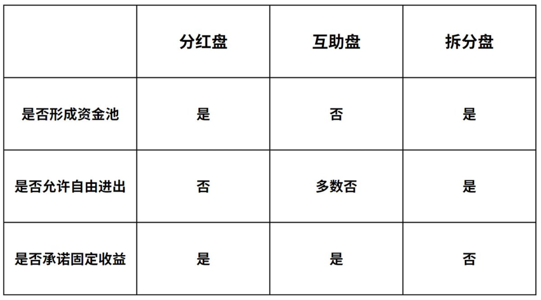 庞氏虽然眼花缭乱,但是归根结底只有三种模型: 分红盘、互助盘、拆分盘。一切庞氏,都是这三种模型的组合。基于这个逻辑的分析方法,他将其称为《三盘模型》。三盘可以单独出现也可组合,每种都有自身优缺点,对应相应的起盘、操盘和崩盘逻辑。