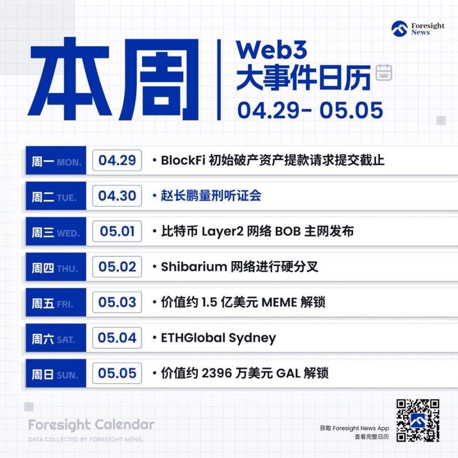 本周(2024 年 4 月 29 日 - 5 月 5 日)Web3 大事件不容错过,下图是本周精彩预告: