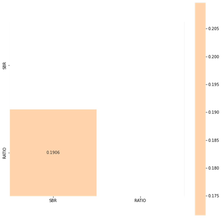 皮尔逊相关系数为 0.1906,我们不能得出结论,SBR 和 RATIO 的每日对数回报之间存在统计上显着的正相关。这并不完全出乎意料,因为我们只使用截至撰写本文时一个多月前的每日价格数据。鉴于所有这些令人困惑的变量,我们将避免在这里(暂时)做出判断。