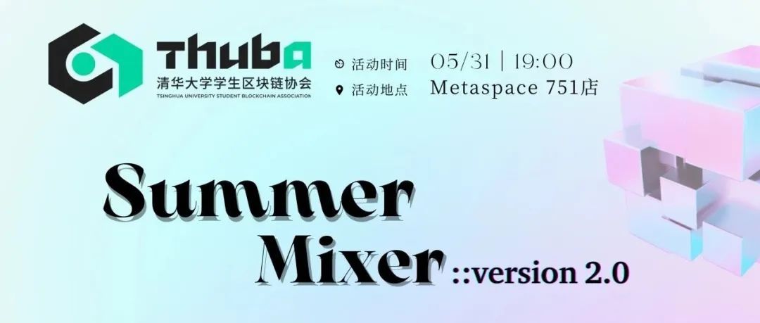 清华大学区块链协会(THUBA)将于 5 月 31 日晚上 19:00 在 Metaspace 751 店举办夏日酒会 2.0 版!活动将邀请区块链领域的顶尖专家和学者进行深度解析,包括 Ethereum EIP/ERC 编辑 Victor Zhou、4Alpha Capital 代表以及 OneKey 大使。圆桌论坛将讨论 Web3 未来发展,特邀 DJ IK 和主持人 Eika 带来活力四射的 DJ 打碟,还有抽奖和精美酒水小食等你来享。
