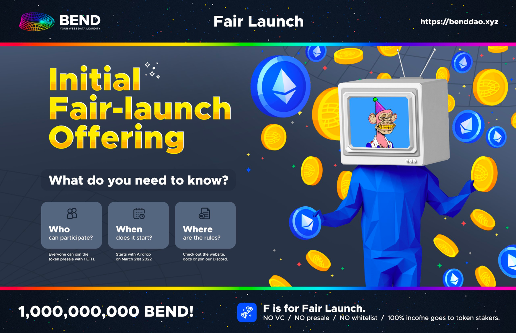 - $BEND 首次公平发行 IFO:无风险投资 、没有预售、没有白名单、100% 的收入归属于 BEND 的支持者。