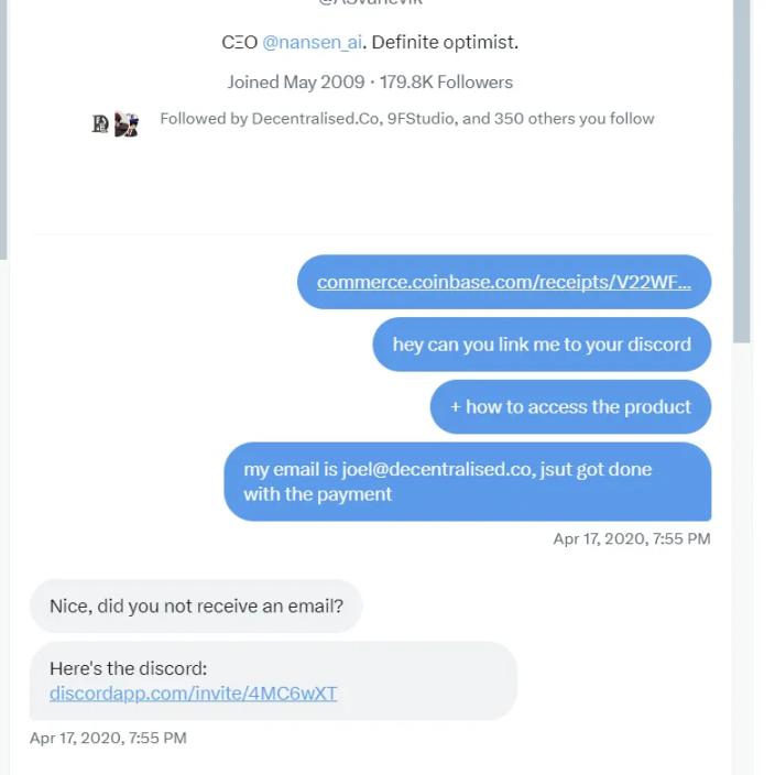 下图是 2020 年我发给 Nansen 的 Alex 的私信,当时我花了 7 美元购买了他们的产品。他亲自做一对一的客户支持。在早期,他们的产品只是一个简单的 SQL 仪表板。现在,他们的估值已经达到 7.5 亿美元。我很自豪成为他们的投资者。但在那之前,我是一个满意的客户,尽管产品还有很多问题。我坚持了下来,因为当产品出问题时,Alex 会亲自提供一对一的支持,他现在仍然这样做。