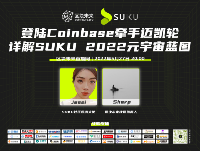 5月27日,Web3 基础设施平台SUKU亚洲大使Jessi做客区块未来直播间,为大家详解了SUKU 2022元宇宙蓝图,与众多国际知名品牌商以及明星合作发布,包括迈凯轮、NBA以收BTC著名的篮球球星丁威迪,《权利的游戏》龙母饰演者艾米莉亚,格莱美奖提名艺术家BT等。SUKU目前已上线:Coinbase Pro, Huobi火币,Kucoin库币, Gate.io,Bitfinex,Bittrex,MEXC抹茶。以下是直播实录: