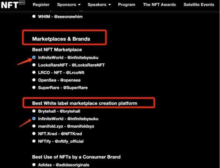 NFT.NYC 正在举办NFT评奖投票活动。SUKU InfiniteWorld 需要你的支持!
