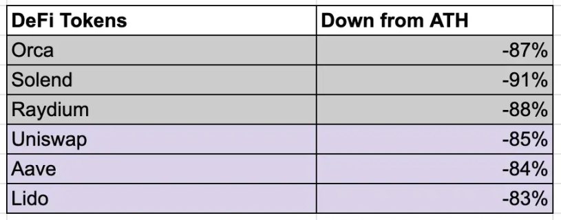 尽管有人可能会说 Solana DeFi 代币的价格大幅下跌,但以太坊的 DeFi 蓝筹也是如此,这是治理代币价值累积的结构性问题。
