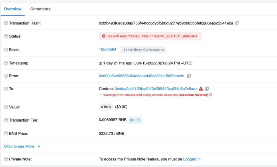 https://bscscan.com/tx/0x13b7e891fc6ba444bac08a15a84707d2a54bdb20228305ddb0d015cc061a07db