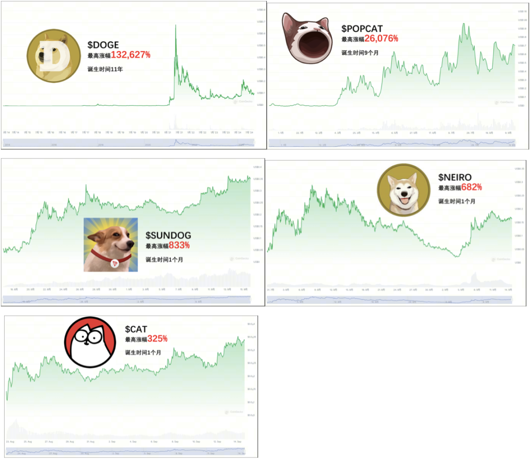 猫猫狗狗作为人类最常见的宠物,是 Meme 赛道里绕不开的文化元素,且投资回报率也非常惊人。