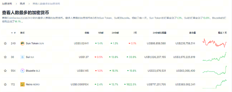 从 CMC 数据可以直观看出,只有 SUN 的价格再次冲到最高点附近,币价是平台在有效做事和平台价值的直接体现,也是用户共识的体现,在 CoinGecko 上,SUN 是近期查看人数最多的 token,三方平台数据再次印证了 SUN 的受欢迎程度。