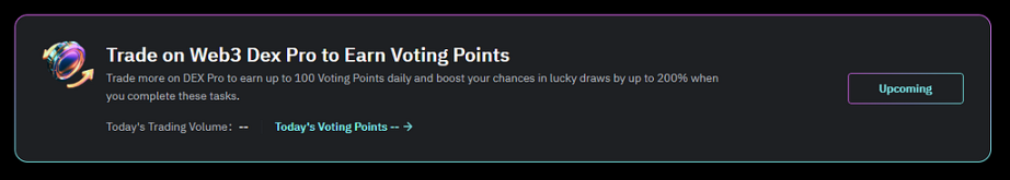 3.1.1. Trade more on DEX Pro to earn up to 100 Voting Points daily and boost your chances in lucky draws by up to 200% when you complete these tasks. (More info: 3.2. Complete daily tasks)