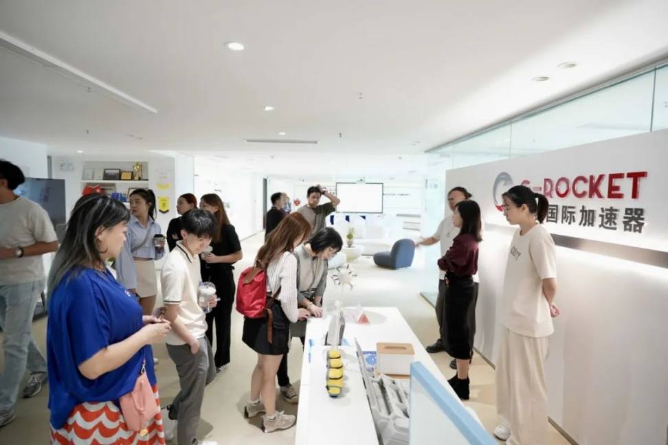 考察团参观 G-Rocket 高诺国际加速器,与入驻企业进行深入交流。在这里,G-Rocket 高诺国际加速器详细介绍了相应的运作模式和服务体系,旨在帮助有意于南沙创业、就业的香港青年熟悉南沙的政策优势和营商环境等,为自己的创业项目寻找新的发展方向。
