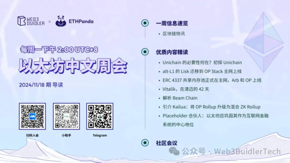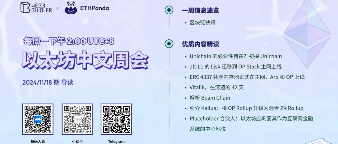 以太坊中文周会(2024/11/18 期):每周简报 Weekly Briefing