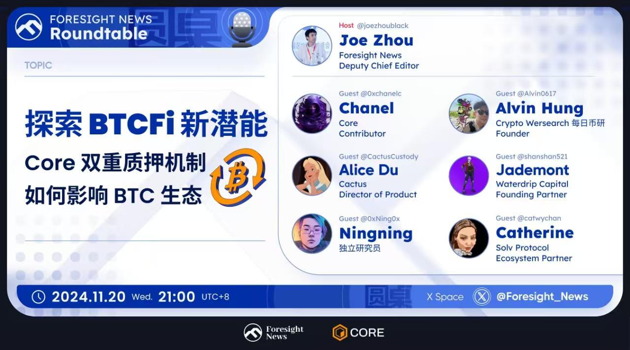 嘉宾: Core DAO 核心贡献者 Chanel、Crypto Wersearch 每日币研创始人 Alvin Hung、Cactus 产品总监 Alice Du、WaterDrip Capital 创始人 Jademont、独立研究员 Ningning、Solv Protocol 生态合作负责人 Catherine