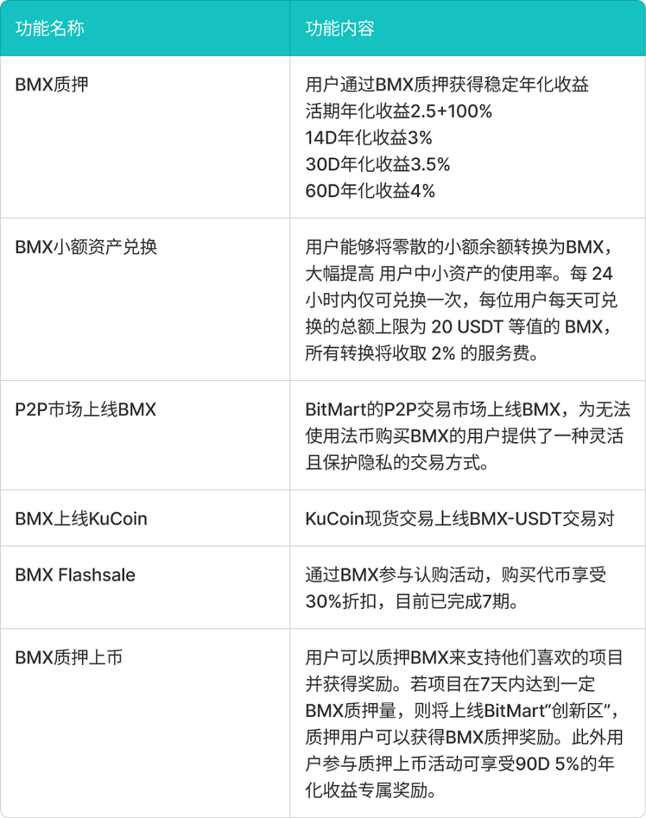 综合来看,BMX 的新功能不仅丰富了其应用场景,还为用户提供了更多的收益机会和参与活动的途径。无论是质押、兑换、P2P 交易,IEO 认购,还是质押上币,BMX 的多样化功能增强了其市场吸引力和流动性,提升了用户体验,进一步推动了其在加密市场中的增长和应用。