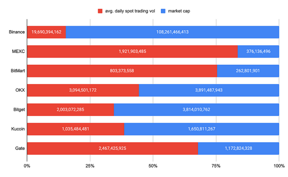图二:交易所近一年现货日均交易量与流通市值对比