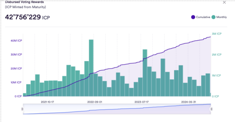 - 分配给 NNS 神经元治理投票的奖励,所有参与网络治理的神经元,都会得到币本位的投票奖励,这部分奖励源自 ICP 的增发。