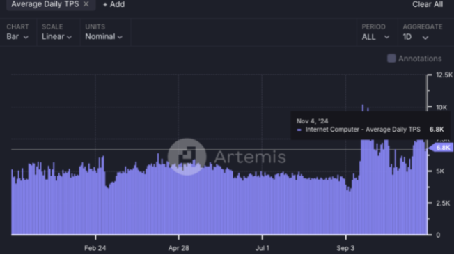 从 TPS 来看,ICP 一直遥遥领先,并且在 9 月份以来出现一个大幅提升,从之前的 5k 左右的水平上升到近 7k 左右。