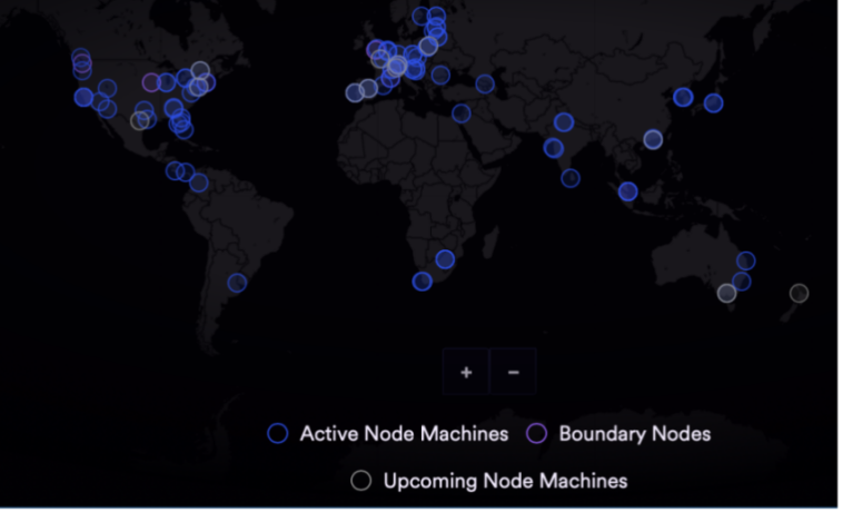 我们可以将 ICP 看作由多个子网组成的系统,每个子网实质就是一条公链,一个子网上的智能合约可以通过发送消息与另一个子网上的智能合约进行通信。在每个子网中,搭载了多个容器,这些容器是 ICP 中可互操作的基础单元,每个容器包含了用户上传的代码和状态,最底层是托管专用硬件的独立数据中心,数据中心之上运行节点,节点负责处理子网容器中的数据和状态执行。节点提供商独立拥有和控制节点机,分布在全球各地的数据中心,为互联网计算机区块链增加容量,ICP 目前拥有 37 个子网,132 个节点提供商,784k 个容器。这种分层结构的设计为 ICP 提供了更高的可扩展性和灵活性,使其能够满足不同规模和需求的应用场景,也让它的观感更贴近于云服务。