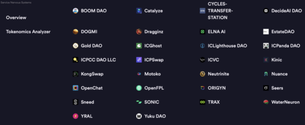 下面我们也将从这几个主要的类别来分析其生态中的代表型头部项目,由于 ICP 生态已经逐渐成长为庞大的生态,篇幅所限,因此不能一一列举。2.1.1 ICPSwap(X:@ICPSwap)从名字上,就可以看出 ICPSwap 是 ICP 的原生 DEX,它也是 ICP 生态系统中最早的 DEX,其产品十分完善,包括 DEX、Staking、Farming、NFT marketplace、Wallet、DAO 治理等方方面面的 DeFi 产品都进行了 All in one 的集成。在 DEX 方面,除了传统的 Swap 之外,还有带 K 线图、分析模块等的专业版产品,TVL 以 9.95M 排在 ICP 第二。2.1.2 Sonic(X:@sonic_ooo)Sonic 是目前 ICP 链上最大的 DEX,其 TVL 近 1000 万美金,其特点包括交易速度快(2 秒内确认)、交易费率低(0.02U 以内的手续费)。同时产品模块包括 Swap,LBP(Liquidity Bootstrapping Pool,流动性启动池)类的资产发行平台,数据分析工具等,产品相对集成度较高,用户体验丝滑。此外,在 Sonic 的 V3 版本中,还集成到了基于 ICP 的 EVM 兼容的比特币二层网络 Bitfinity 中。2.1.3 Helix Markets(X:@HelixMarkets)订单薄式的 ICP 链上的 DEX,除了对 ICP 链上资产的支持之外,还支持 Runes 协议的资产如 Rich 等,这也不得不提到 ICP 的强大的链融合的特性,能够直接在 ICP 链上交易比特币主网的 BTC、Ordinals、BRC20、Runes 协议等资产。相比于前两个项目,Helix Markets 做得比较晚一些,拥有约 200 万美元的 TVL。2.1.4 KongSwap(X:@kongswap)KongSwap 是一个基于 AMM 的去中心化交易所(DEX),提供跨比特币、以太坊和 Solana 等多个区块链的无缝、无桥跨链交易,它利用 ICP 的 Chain Fusion 技术和 ICP 协议中的稳定内存,解决了高昂的费用、流动性分散和复杂的用户体验等常见的去中心化问题。KongSwap 还在 GitHub 和开发者论坛上建立了一个活跃的社区,确保开发者的透明度和可访问性,KongSwap 于 9 月正式加入 SNS。2.1.5 WaterNeuron(X:@WaterNeuron)成立于 2021 年,专为 ICP 设计的流动性质押协议,类似于以太坊的 Lido,旨在为 ICP 用户提供流动性,使用户能够在质押 ICP 代币的同时,保持资产的流动性。截至目前,WaterNeuron 的 TVL 已超过 1500 万美元,显示出其在 ICP 生态中的影响力和市场认可度,是 ICP 生态的明星 DeFi 项目。随着 ICP 生态的不断扩展,WaterNeuron 也在不断创新和优化其流动性质押产品,吸引了越来越多的 DeFi 用户加入,WaterNeuron 正逐步发展成为一个不可忽视的项目,在提升 ICP 网络的去中心化和资本效率方面发挥着重要作用。2.1.6 SparkFi(X:@sparkfiicp)一个用于流动质押 ICP 的 DeFi 协议,它使用 nICP 作为基础资产,为 ICP stakers 释放可组合的流动性。2.1.7 Bob.fun(X:@bobdotfun)一个 ICP 上的 memcoin 发射平台,前身是一个基于 ICP 的创新挖矿协议,Bob.fun 已经给 ICP 带来了大量的 cycles 的燃烧,同时也诞生了一些不错的 memecoin 项目。2.1.8 Oisy Wallet(X:@oisy)Oisy 钱包由 DFINITY 基金会维护,是 ICP 对“用户去钱包化与 DApp 进行交互”最具代表性的实践,它是一款基于浏览器的多链加密钱包,运行在 Internet Computer 上,却处理着以太坊 ERC-20 代币,允许用户发送和存储加密货币并直接从浏览器连接到 DApp。Oisy 钱包用户无需下载任何插件或应用程序,可轻松跨不同设备访问,对于热衷于去中心化的用户来说,Oisy Wallet 是完全链上的,Oisy Wallet 全栈应用安全部署在链上。此外,钱包密钥是在 ICP 网络上生成和保护的,使用链密钥技术,密钥是使用先进的密码学生成的,并在专用 ICP 节点之间分配。Oisy Wallet 是通过智能合约传送到浏览器的,而非传统的在手机应用商城下载钱包 app,这再一次体现了,ICP 的优势不仅仅是用户体验,而是要真正实现去中心化。2.2.1 OpenChat(X:@OpenChat)知名的去中心化社交应用,由 DFINITY 前智能合约工程师 Matt Grogan 创办,是世界上第一款由社区控制的聊天系统,同时也完全部署于 ICP 链上。于 2023 年 3 月作为 DAO 推出,筹集了 100 万 ICP,以换取 2500 万 CHAT(初始供应量的 25%),它具有与 Discord 和 Slack 类似的功能集和性能,同时还提供许多加密原生功能,例如用户可以相互发送包含 ICP 和 BTC 等代币的消息,OpenChat 目前拥有 25.71k 的 MAU(月活跃用户数)。2.2.2 Dmail(X:@Dmailofficial)是一个提供加密电子邮件服务的平台,统一通知和定向营销,它与多个链和 dApp 集成,满足用户、开发人员和营销人员的需求。支持跨各种链部署的用户自托管去中心化邮箱解决方案以及基于 Web3 身份系统的专有消息传递协议,Dmail 确保通过电子邮件和通知进行安全通信,将其自身打造为 Web3 基础设施中的关键通信链路,今年 1 月底 DMAIL 代币上线 OKX 等交易所。2.2.3 Catalyze(X:@catalyze_one)Catalyze 成立于 2021 年,旨在为 Web3 社区提供用户友好的社区创建与管理、活动安排和即时价值转移工具,2023 年 9 月,CTZ 代币在 ICP 上发布,旨在奖励平台上的社区。展望未来,Catalyze 致力于吸纳新互联网的 KOL,并成为 Web3 学习、社区建设、活动和无缝代币转让的首选平台。2.2.4 ShareX(X:@ShareX_Network)ShareX 的使命是彻底改变 Web3 共享经济,这个创新平台旨在增强数字资产的共享和管理方式,促进更加互联互通和协作的 Web3 环境,ShareX 的愿景是弥合共享经济中的差距,并引入更高效、更去中心化的共享机制,目前,ShareX 已经加入了 ICP 与 ABCDE 共同举办的加速营中。2.2.5 ICP Racer(X:@ICPRacer)ICP Racer 是一个基于 Telegram 的社交化小程序应用,将 ICP 生态与拥有 9 亿用户的 telegram 生态进行融合,推动 ICP 的 mass adoption,ICPRacer 目前也已经加入了 Web3Labs 的加速营。AI 赛道是 ICP 