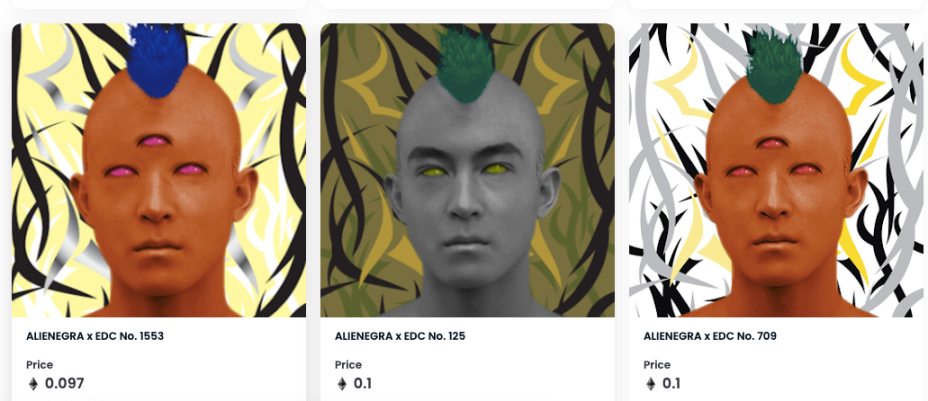 该系列NFT在发售期间同样遭到抢购,但由于后续发行团队几乎对该项目处于「放养」状态,「ALIENEGRA x EDC」系列NFT价格很快跌穿发行价。当前的二级市场上,该系列NFT地板价仅为0.07 ETH(约80美元),相比发行价下跌86.5%,且几乎没有流动性。