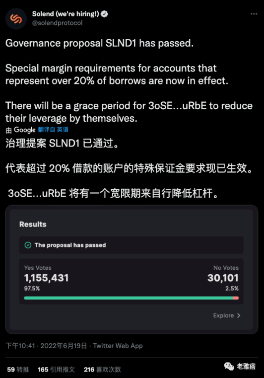 该提案轻松通过,110多万张 “赞成 “票对3万张 “反对 “票。然而,其中超过100万张票来自一个拥有巨大治理代币持有量的用户。如果没有他们的投票,该议案就不会通过法定人数所需的1%的参与率。