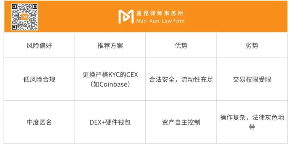 • 普通用户应优先选择合规 CEX+ 自有 KYC,避免账号被封;• 技术型用户可尝试DEX+ 多重签名钱包,但需承担智能合约风险;• 尽早申诉,保留所有交易记录,如有必要可寻求法律援助。最后,事情关你个人的资产安全,需要反复提醒你的是,若你正在或准备使用他人的 KYC 账号,请立即将资产转出并停止使用该账号。因为从法律角度来看,该账号并不属于你,且一旦触及平台风控等问题,资产冻结的后果可能难以逆转。* 本文为上海曼昆律师事务所的原创文章,仅代表本文作者个人观点,不构成对特定事项的法律咨询和法律意见。欢迎更多 Web3 从业者投稿、爆料。如需转载及法律咨询,请添加客服:mankunlawyer。