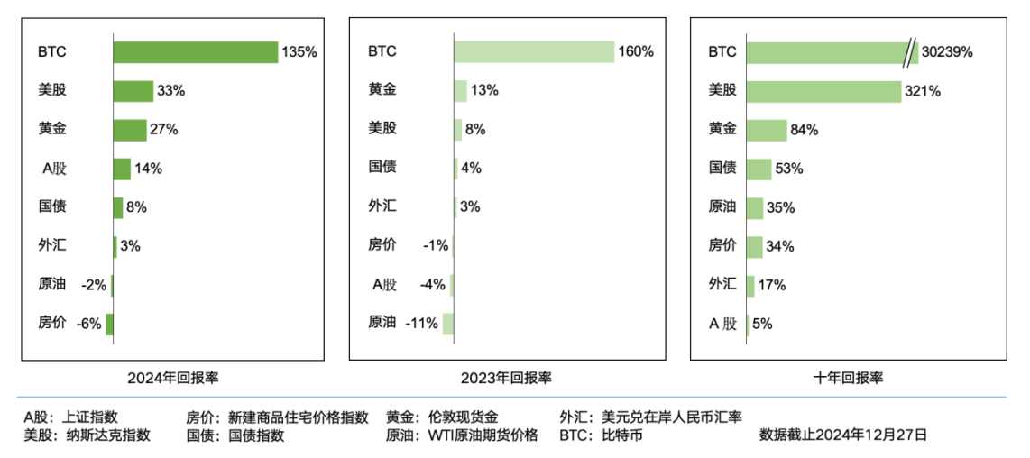 2024 年,全球经济在诸多挑战中展现出韧性,增长率达到 3.2%。通胀有所回落,多国央行开启降息周期。然而,全球 70 余国的大选导致政府内部分歧加大,民粹主义抬头。在通胀缓和的背景下,多数经济体的政策出现转向,如美联储 9 月降息,日本首次加息,中国 9 月后加强刺激政策。全球股票市场回报超 20%,债券市场也有增长,全球多元资产投资组合在 2023 年 16.5% 的表现基础上实现了 12.5% 的总回报。