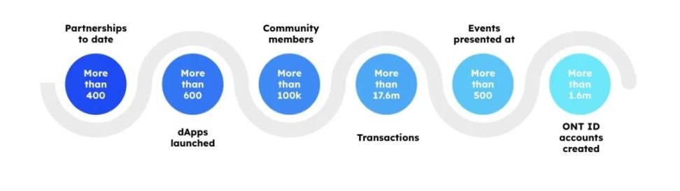 ◆ ONT ID 注册数突破161万。去中心化身份仍是今年备受关注的话题,随着对 DID 的关注,以及本体合作伙伴的持续拓展,本体 ONT ID 用户也有了新突破。根据撰文时官网数据显示,ONT ID 已达1,619,100。用户能够使用 ONT ID 管理资产、体验 dApp,并在未来作为通行证参与更多实体场景。◆ 全球社区成员突破10万。本体致力于建立全球化社区,不断推进各语言地区的生态发展。据统计,截至5月,本体全球社区已30+,社区成员成功突破10万,达成新里程碑。◆ 设立德国办公室。欧洲,尤其是德国柏林,一直以来都是区块链全球影响力最大的地区之一。以德国办公室为“圆点”,本体将为欧洲用户和监管机构持续提供去中心化解决方案,为欧洲带来有助于隐私保护提升的支持。◆ 亮相多场行业盛会。从世界银行主办的 SME Finance 论坛直播,到知名区块链媒体 Cointelegraph华语、Blocklike 等 AMA 讨论,或是亮相美国 Consensus2022、参与万向区块链大会等,本体正在逐步扩大全球影响力,寻求新合作,拓展新生态。◆ 跨领域合作。本体分别与去中心化移动出行平台 bloXmove、音乐流媒体平台 ROCKI、日本咨询公司 AP.LLC 等多家企业达成合作,为他们提供成熟的 DID 技术。从传统各行业到新生去中心化领域,合作生态进一步拓展。去中心化协作将成为 Web3 发展的必然趋势之一,而去中心化身份(DID)也会成为 Web3 的关键基础设施。该技术与其它去中心化技术的灵活组合,以及相关的协议与产品,也将会构建去中心化社会的信任协作。