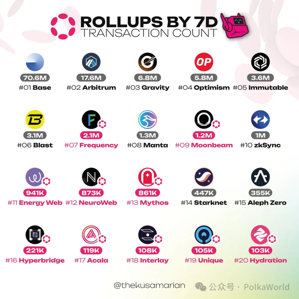 交易量最高的前 20 Rollup 有 10 个构建在 Polkadot?