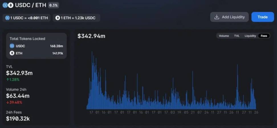 例如由USDC_ETH池在Uniswap第3代上产生的费率,任何人都能够参与到流动性提供中,分享这些费率,而无需做市商技能。
