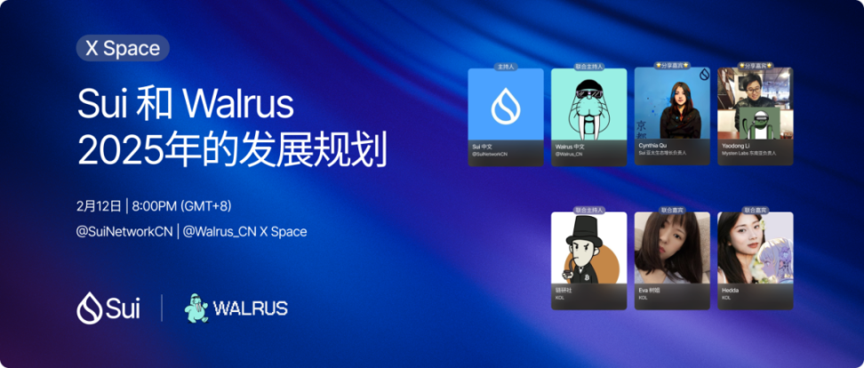 2 月 12 日晚 8 点,Sui 中文和 Walrus 中文联合加密 KOL 链研社共同举办了本次 X Space,邀请了 Sui 亚太区生态增长负责人 Cynthia、Mysten Labs 东南亚负责人 Yaodong Li,以及两位资深的 Sui 玩家 Eva 树姐和 Hedda 共同探讨 Sui 和 Walrus 2025 年的发展规划。