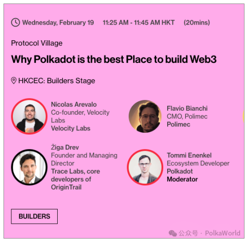 然后还有一个 Polkadot 的单独 Panel,4 位 Polkadot 生态建设者将带来深度探讨: