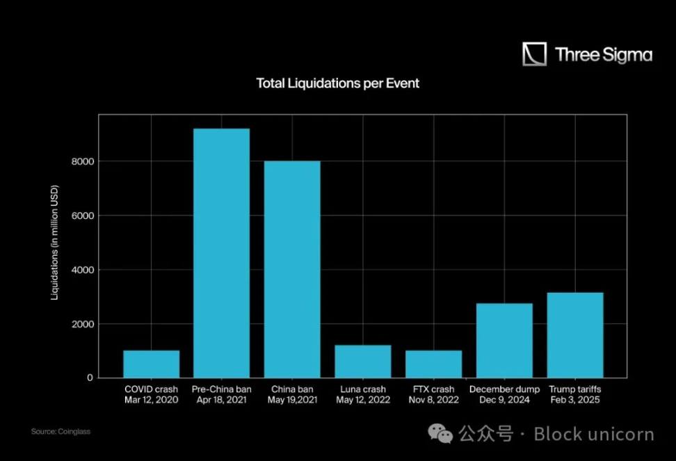 正如该图表所强调的,许多 2021 年后的事件在从 CEX 报告的数据源中直接引用时,可能被大大低估。通过应用从 Hyperliquid 的完全透明性中得出的乘数,这些事件的清算规模远比官方数字所暗示的要大得多。