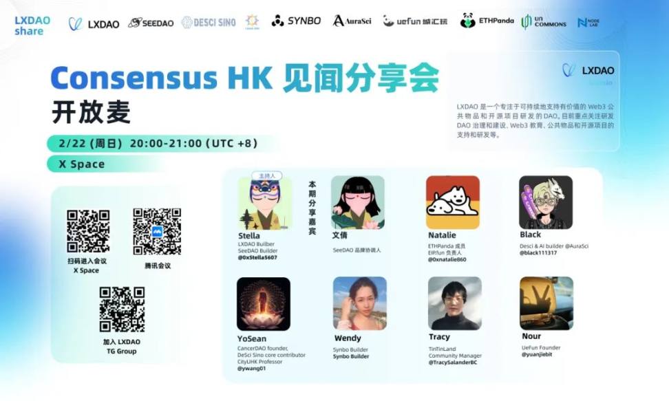 2025 年 2 月,Consensus HK(香港共识大会)成功举办,吸引了来自全球的 Web3 创新者、投资人、开发者及社区成员。作为 Web3 领域的重要国际盛会,Consensus HK 既是一次行业趋势的展示,也是一个深入交流与探索未来可能性的契机。本次大会汇聚了多元声音,从政府支持、市场趋势到社区发展,每一位与会者都有自己的独特观察和思考。那么,这次大会带来了哪些关键信号?香港 Web3 发展的前景如何?我们在 2 月 23 日举办了一场回顾 AMA,一起来看看大家的一些看法吧。