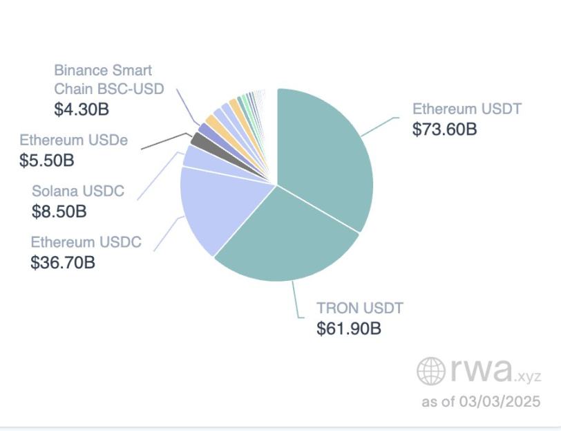 当人工智能和 Memecoin 市场双双遭受重创之际,稳定币的总锁仓价值(TVL)却持续稳步增长,每月增长 3%,在我撰写本文时,总锁仓价值已超过 2200 亿美元。