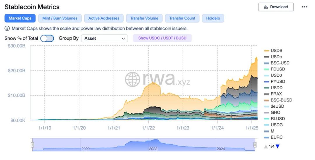 在这种情况下,我认为投资者的策略会更倾向于 「避险」 ,这就是为什么我相信 2025 年大部分资金将流入由法定货币支撑的稳定币。而且其中一部分投资者希望利用他们的资产,从稳定币中获得一些被动收益。