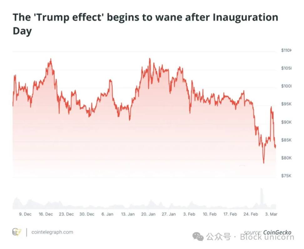 或许宏观经济因素,如迫在眉睫的关税战争和全球经济疲软,是导致市场价格下跌的原因。此外,2 月底 Bybit 遭黑客攻击,使得全球交易量第二大的加密货币交易所流失了 14 亿美元。亦或许是特朗普政府本身在其上任的前六周内制造的混乱和不安全感也难辞其咎?
