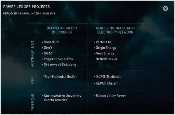 Power Ledger 目前已经与多个大型能源公司、房地产开发商、非盈利组织和大学进行合作,实施项目 15 个以上,令其生态系统能与全球能源市场无缝衔接,推动全球电力网络生态的改变。
