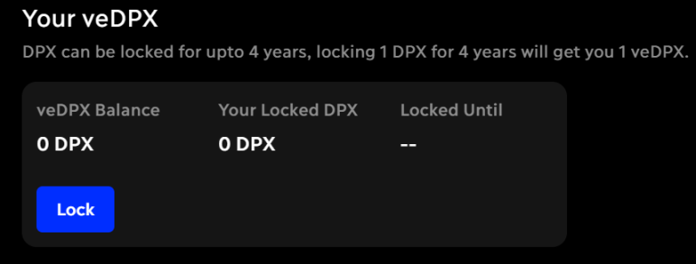 你可能已经知道了,我们发行了新的 veDPX 机制,允许用户锁仓 $DPX 获得 veDPX。