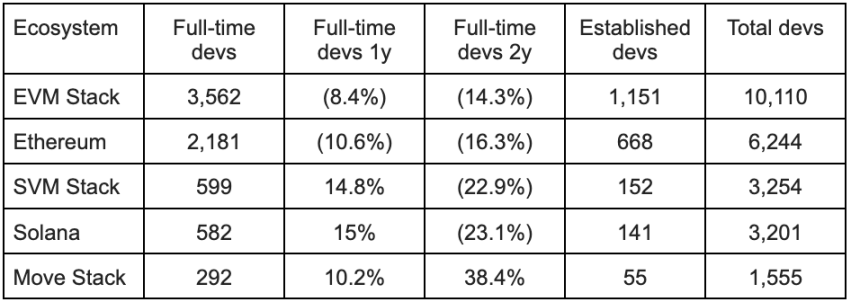 According to a16z Crypto’s statistics, Ethereum remains the favored ecosystem among developers, with 20.8% of crypto projects built on Ethereum. Solana and Base ranked second and third, accounting for 11.2% and 10.7% of crypto companies, respectively.
