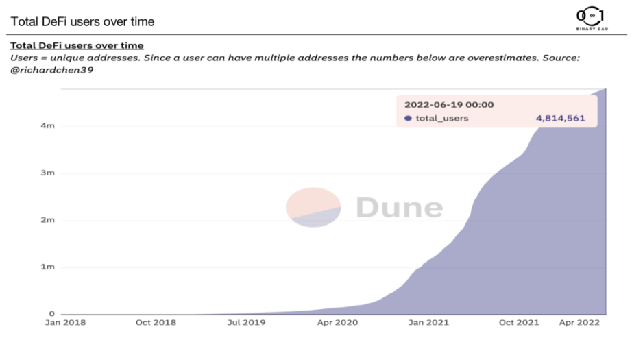 根据DUNE上的DEFI用户增长趋势可以看出,自2018年DEX诞生以来,这场迁移已然开始,至今加密行业的DEFI用户已有481万之多,而且方兴未艾。毕竟,CEX的出现和发展只能算是WEB3.0时代过渡阶段的妥协性解决方案,只是这种现象级的共存还需要相当长的时间。