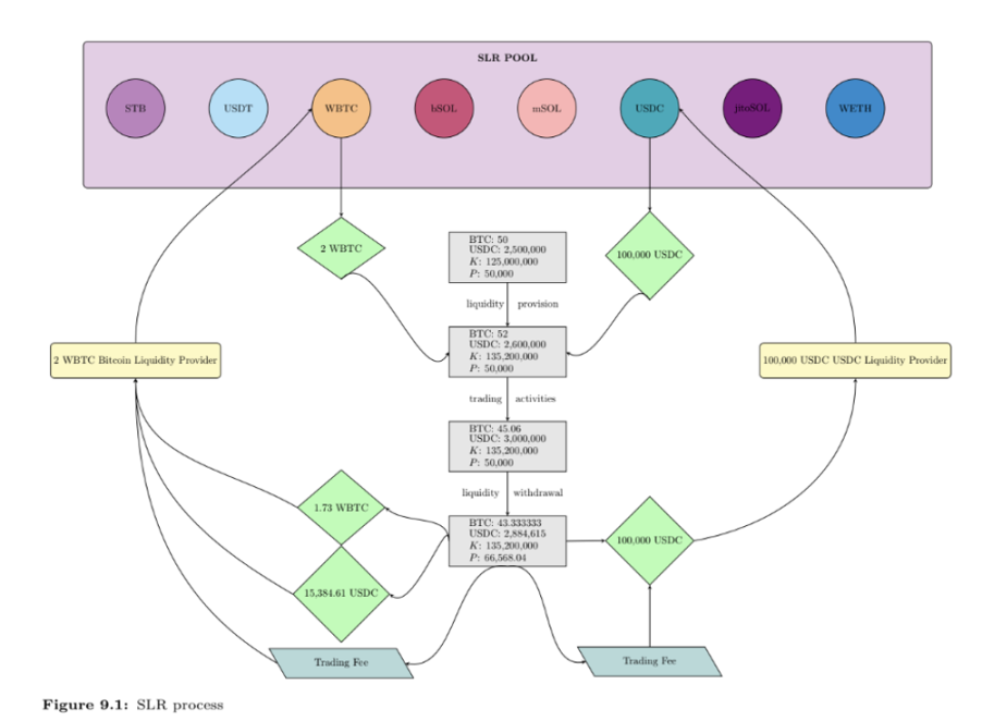 智能流动性路由(SLR)旨在帮助流动性提供者(LP)自动化、分散化并优化流动性提供。用户可以存入单一资产,系统会自动将其分配至多个流动性池,从而分散流动性风险。SLR 会比较不同流动性池的预期回报(APY),并自动将资金导入收益最高的池,同时保持流动性头寸的多样化。