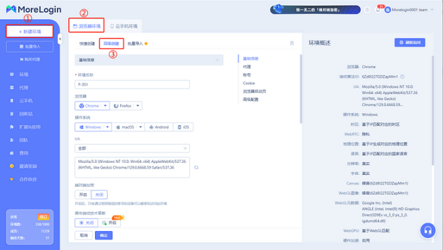 创建流程:「创建环境」→「浏览器环境」→「高级流程」