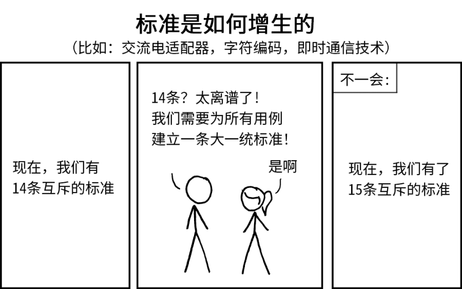 当然,当你试图建立一个新标准的时候,先来看看这张漫画: