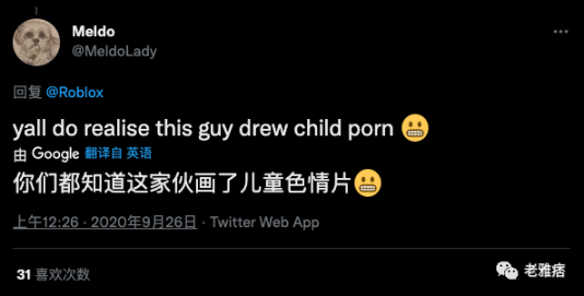 2021年6月,一位匿名的Twitch流媒体人上传了一个名为 “Roblox恋童癖聚会 “的片段。一位用户写道:”我不喜欢两位数”。