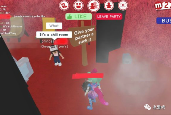 育儿网站Family Zone发布了类似的警告,”Roblox上的狂欢室引诱好奇的孩子”。一个标志写道:”给你的伴侣吸吮”。一个自称是10岁的用户说,”这个房间令人不寒而栗”。