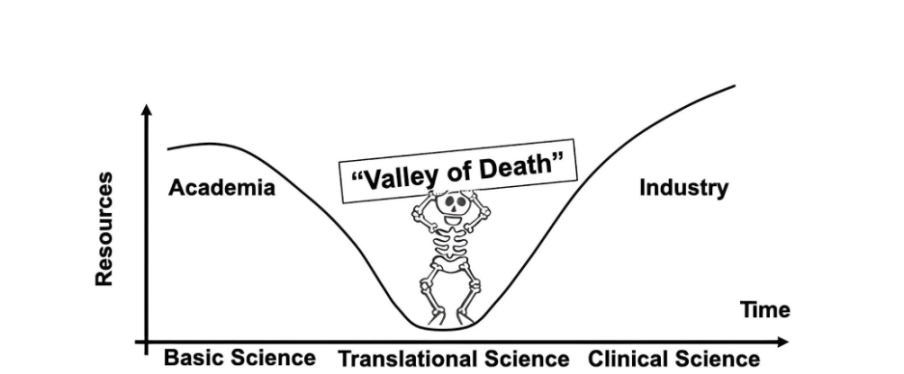产学研「死亡之谷」,来源:Translational Medicine Communications