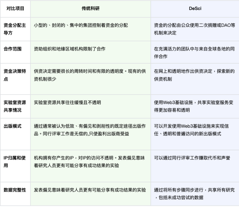 总的来说,DeSci 通过去中心化技术推动科研的透明化、高效化和协作化,弥补了传统科研模式中的种种不足。它不仅改变了资金分配、数据共享和出版过程,还通过社区合作加速了科研成果的转化,推动科学更加开放和包容,创造了更具潜力的科研环境。