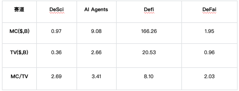 当前 DeSci 赛道整体市值约为 10 亿美元,日均交易量维持在 800 万 -1200 万美元 区间,市值 / 交易量比率(MC/TV)达到 8-15 倍,显著高于传统科技股(标普 500 平均 MC/TV 约 0.3 倍)甚至加密货币主流赛道(DeFi 平均 MC/TV 约 3 倍)。这种异常比值揭示了市场的深层逻辑: